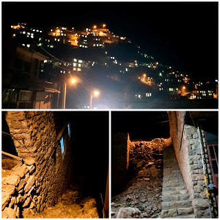 Gece, biraz turlayalım diyerek kendimizi dışarı attık. Fakat henüz kapanmamış birkaç hediyelik eşya satan dükkan haricinde, tek bir hayat belirtisi göremedik diyebilirim. Gece karanlığında o uçurumlar ve evlere bakıp hayretler içerisinde Azad’a, “Yani şimdi bi komşu birinden bir şey isteyecek olsa bu kadar uçurumu, yokuşu nasıl çıkacak?” deyip durdum.